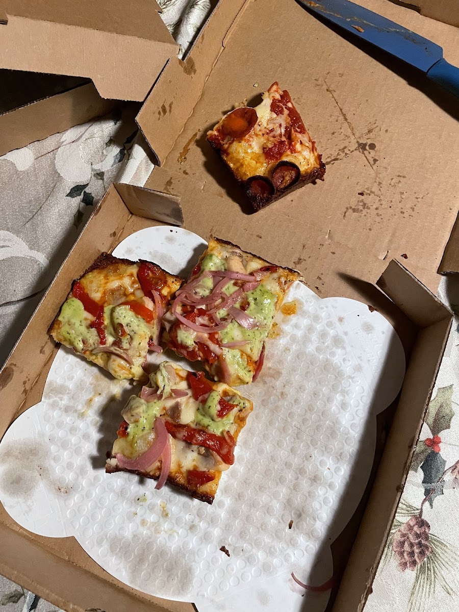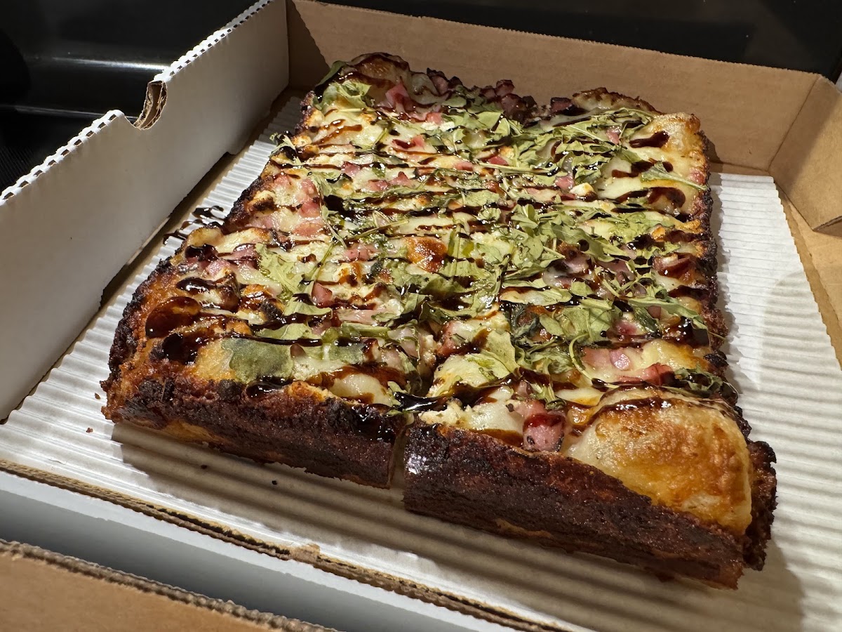 We ordered pickup for New Year’s Eve as we all wanted pizza. Having had the original Detroit style pizza in Detroit (Buddy’s), we have been wanting to try. We ordered Monkey Styx with Monkey Sauce (reminded me of buffalo sauce but a little sweeter) and 3 pizzas-Piggly Figgly, Big Chungus, and Chicken Bacon Ranch. All was delicious and had the perfect Detroit style crust with the crispy cheese edges as you would expect. I probably still preferred the Big Chungus as it’s the classic meat style, but I did enjoy all the types we tried. We’re excited to try some of the other flavors next go around. Definitely will be back! :) Perfect family NYE meal.