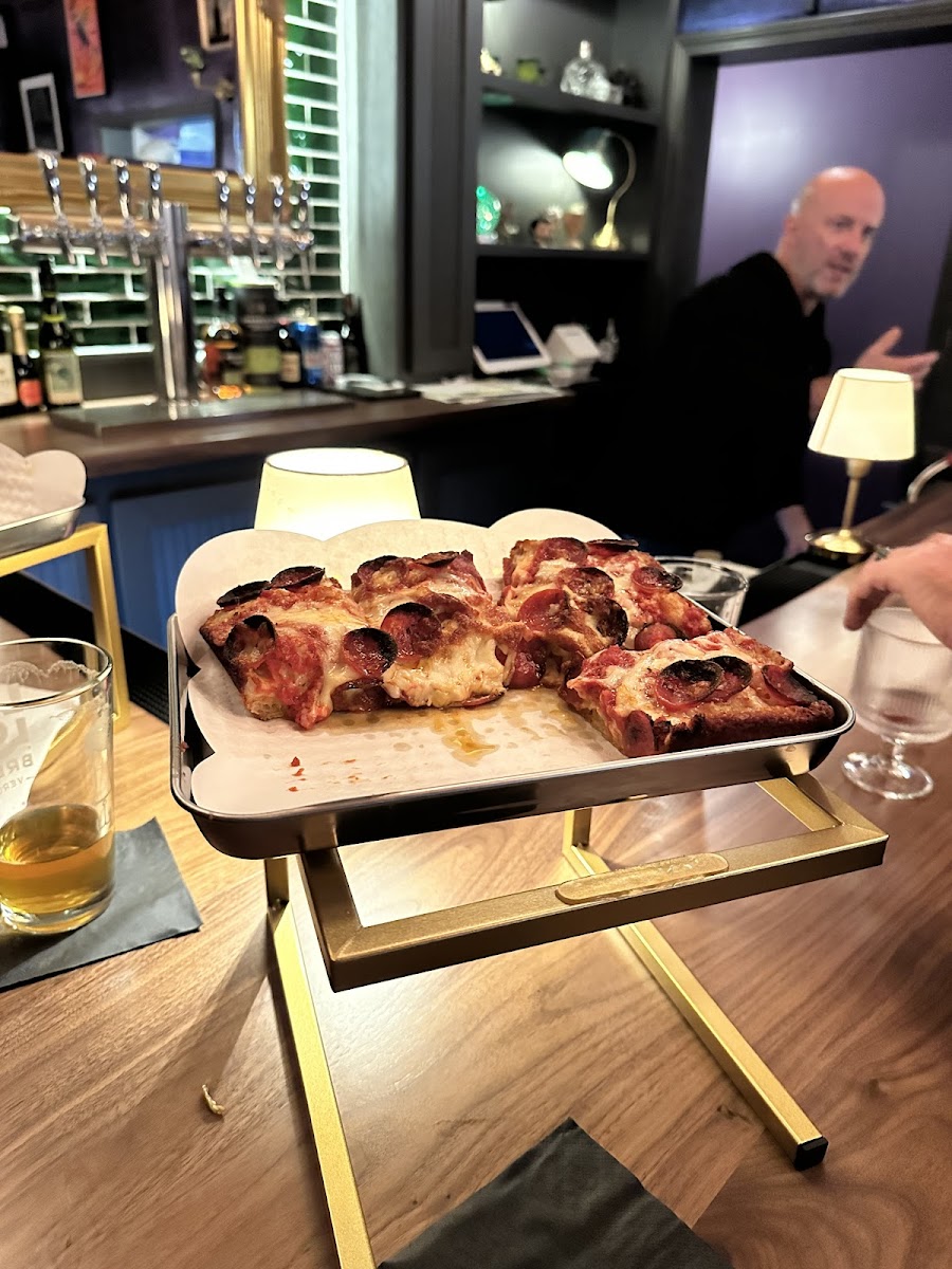 Yuuuuuum! Stopped here on a whim in the neighborhood wanting pizza. Fantastic pizza (Detroit style) Had the meatball appetizer on a bed of caramelized cheese that was also crazy amazing good. The place is beautiful & the service wonderful. We will be back!